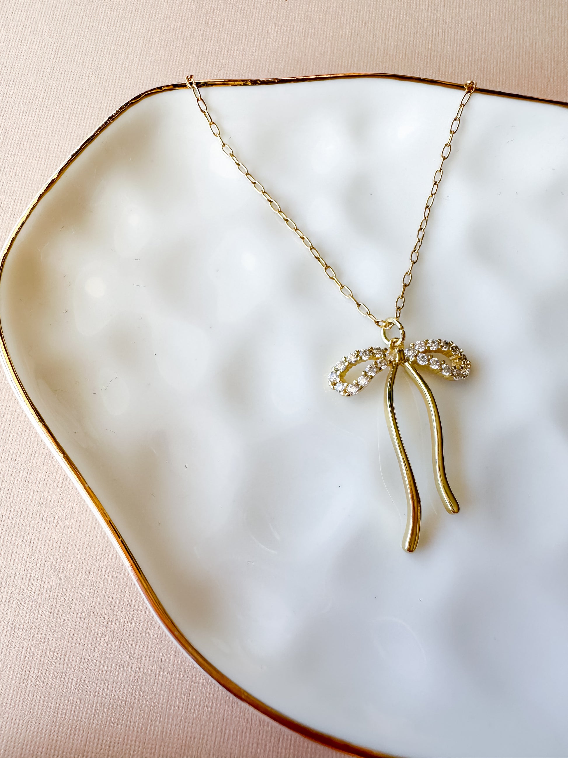 dainty diamond bow necklace