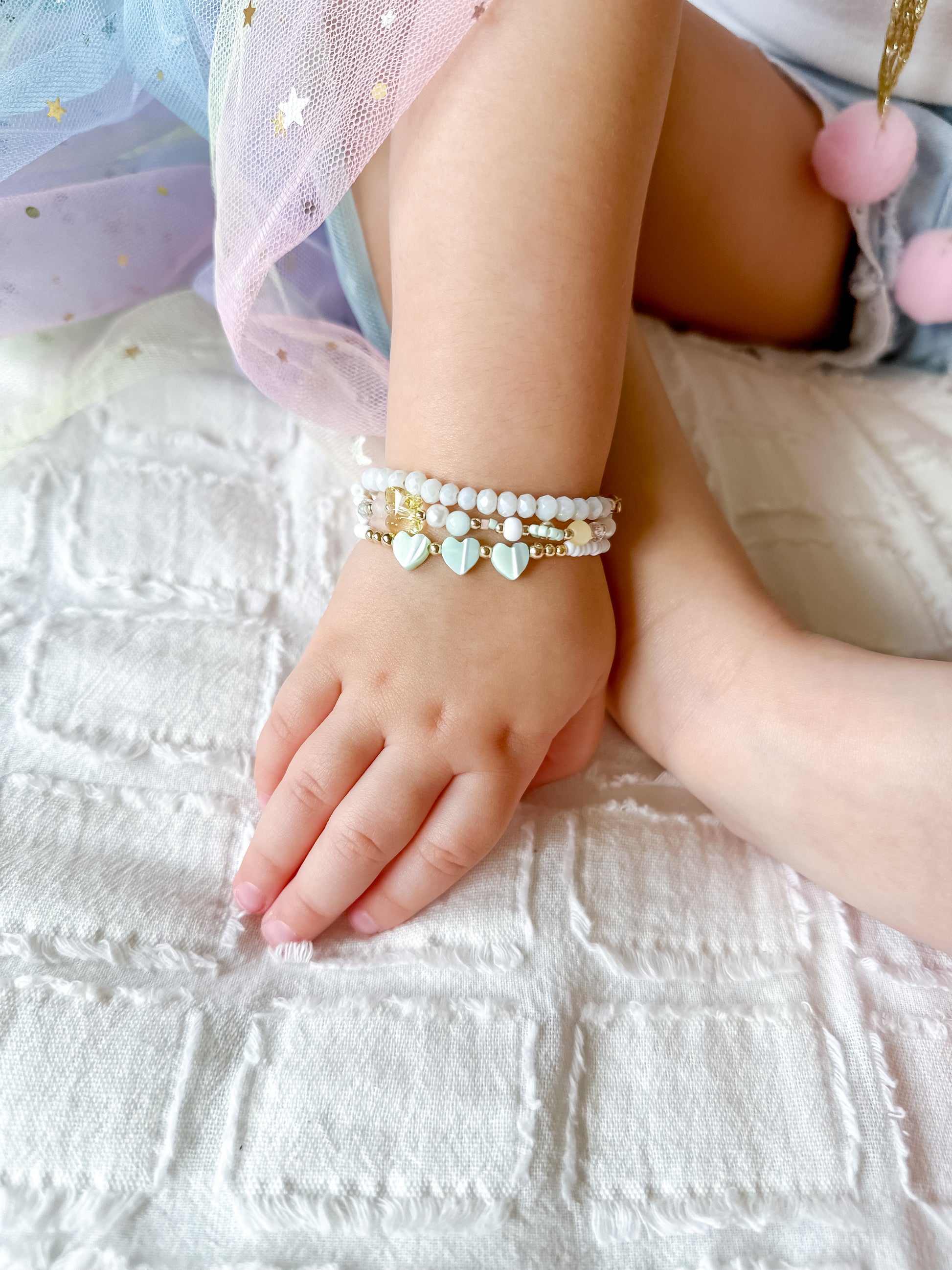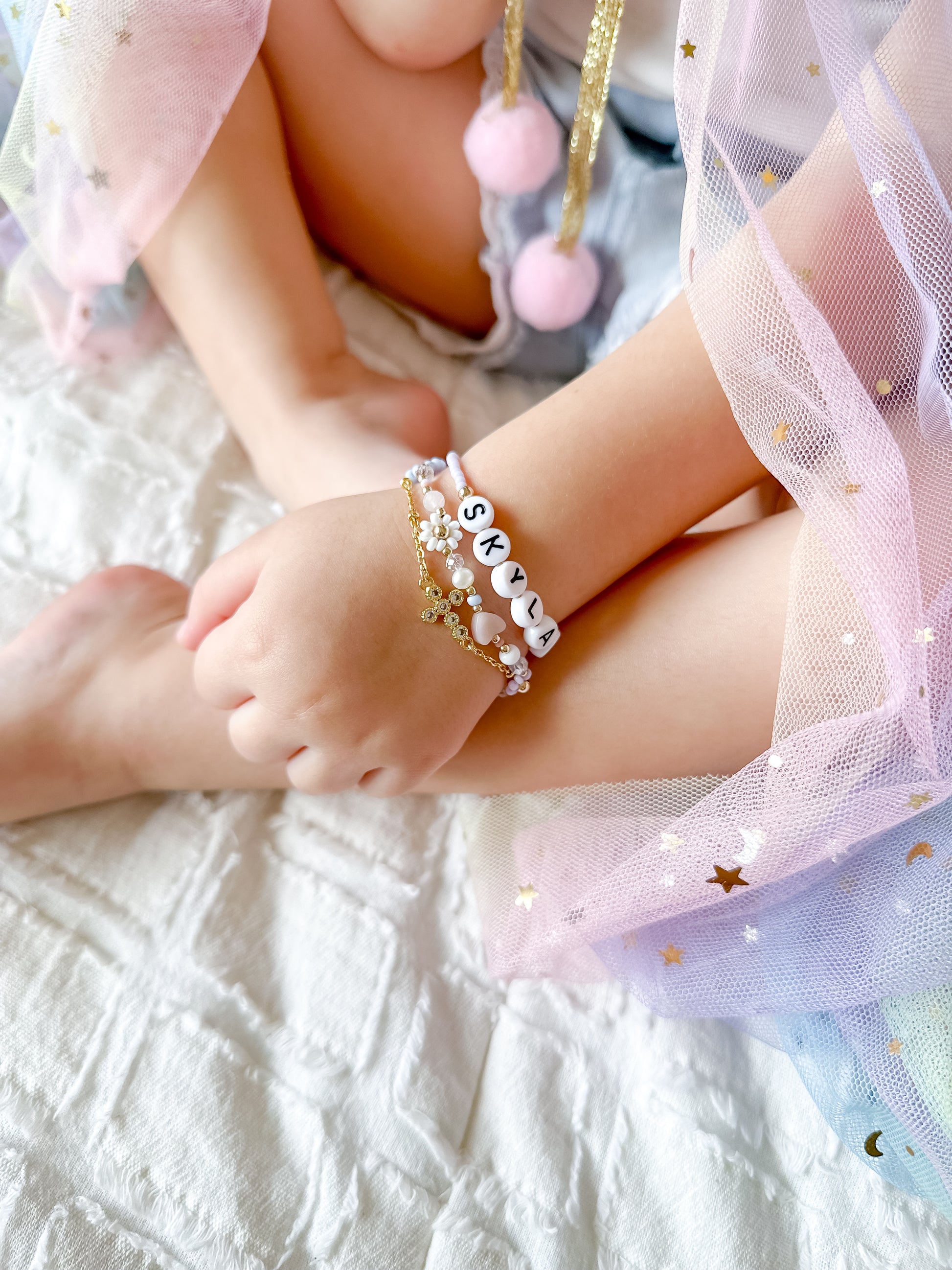 *when purchasing for infants, remember to remove bracelets before naps and keep a close eye on teething babies, as small components can pose a chocking hazard*