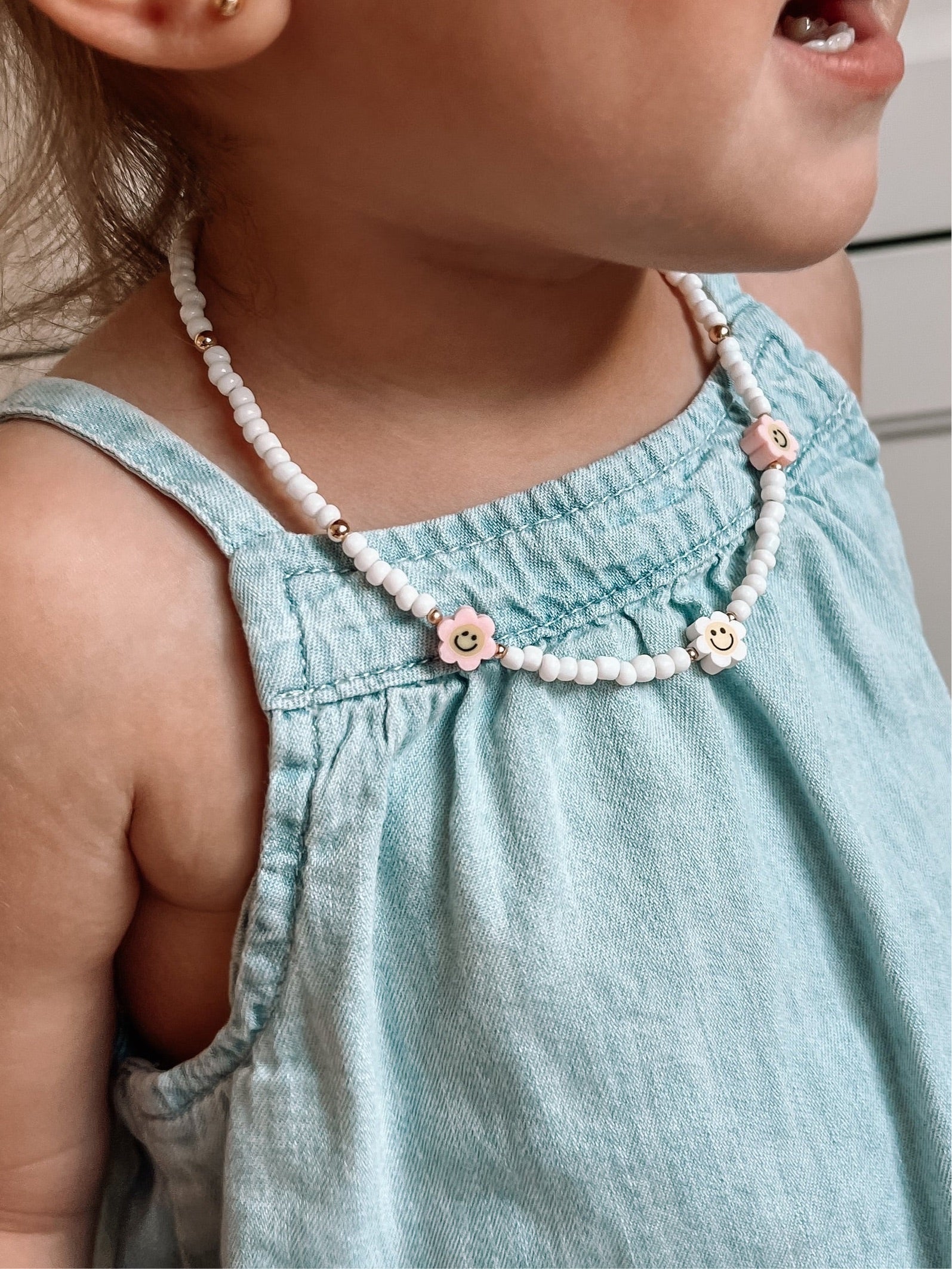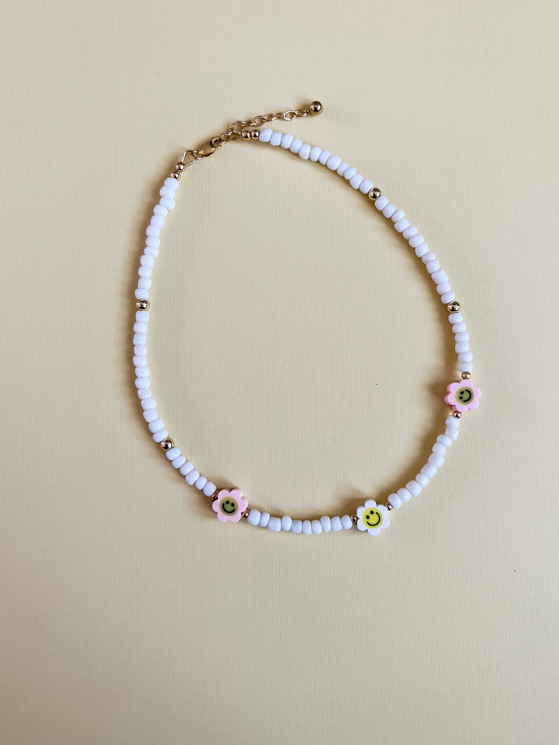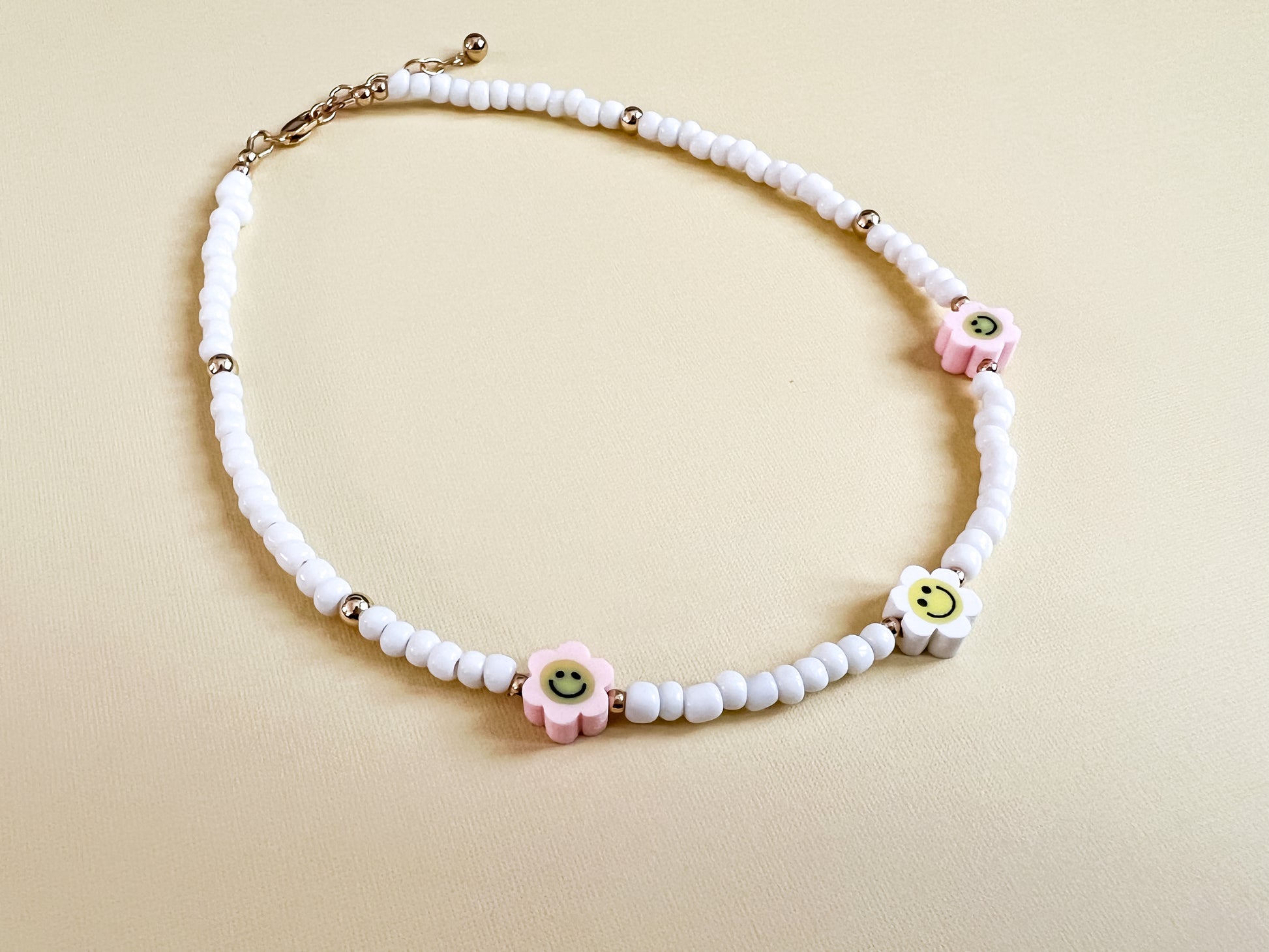 Lovely daisies will be blooming on your neck all day long! This happy daisies necklace is the perfect way to liven up your wardrobe with its polymer flower bead, white seed bead, and gold filled clasp. It's a fun and playful accessory that's sure to brighten your day!