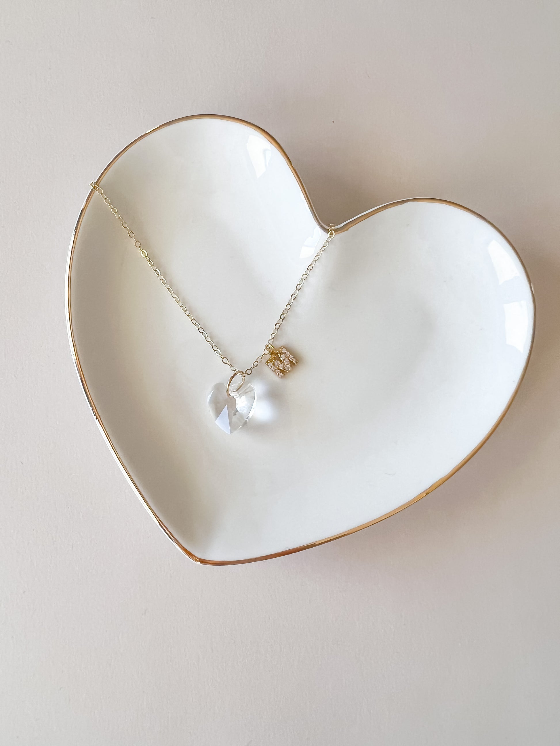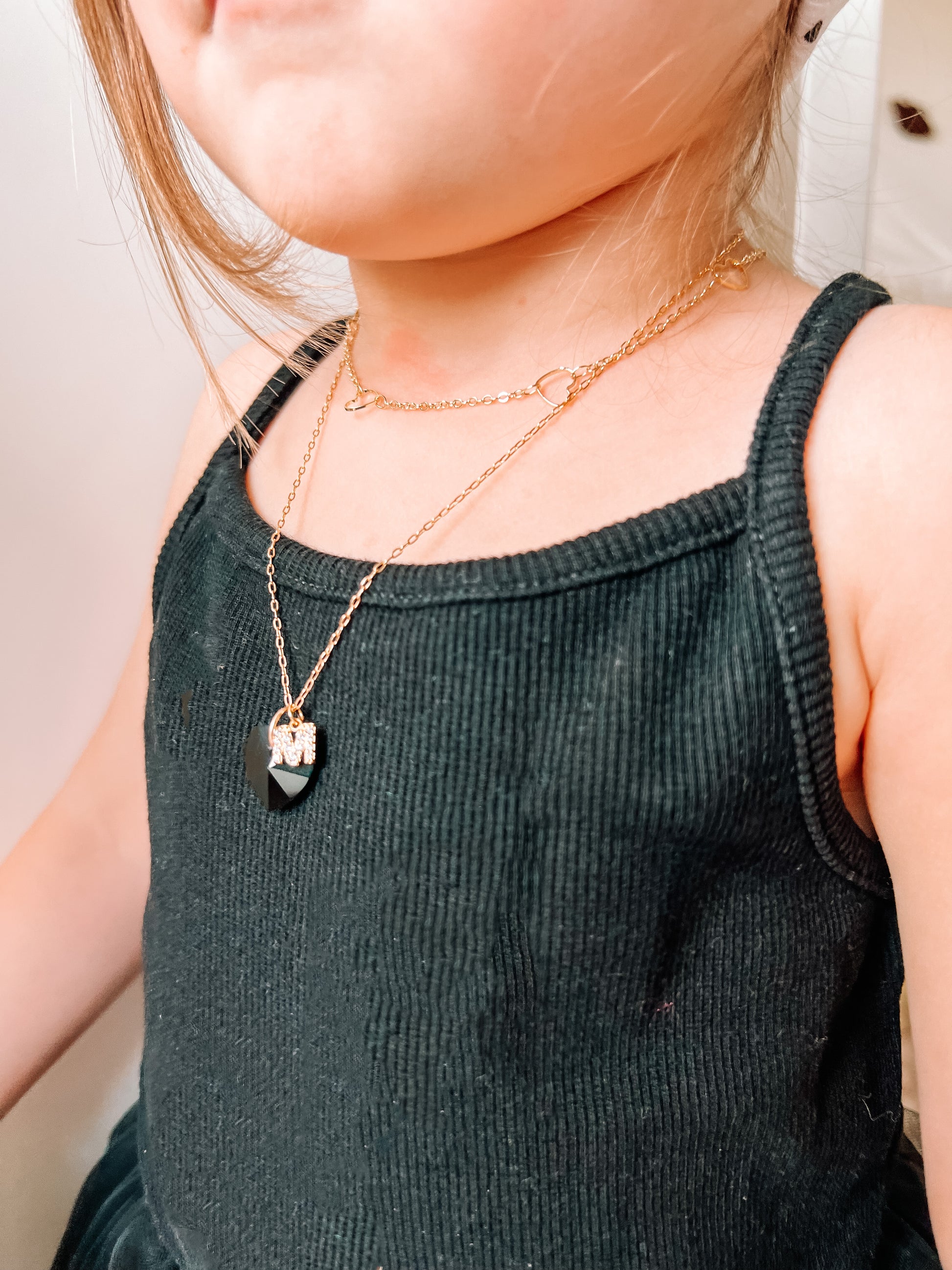 show the ones you love just how much you care with this heart-warming necklace! crafted with a crystal heart charm and gold-filled chain, this necklace is perfect for showing your mama or babe just how much you care. plus, you can even add an initial charm to make it that much more personal!