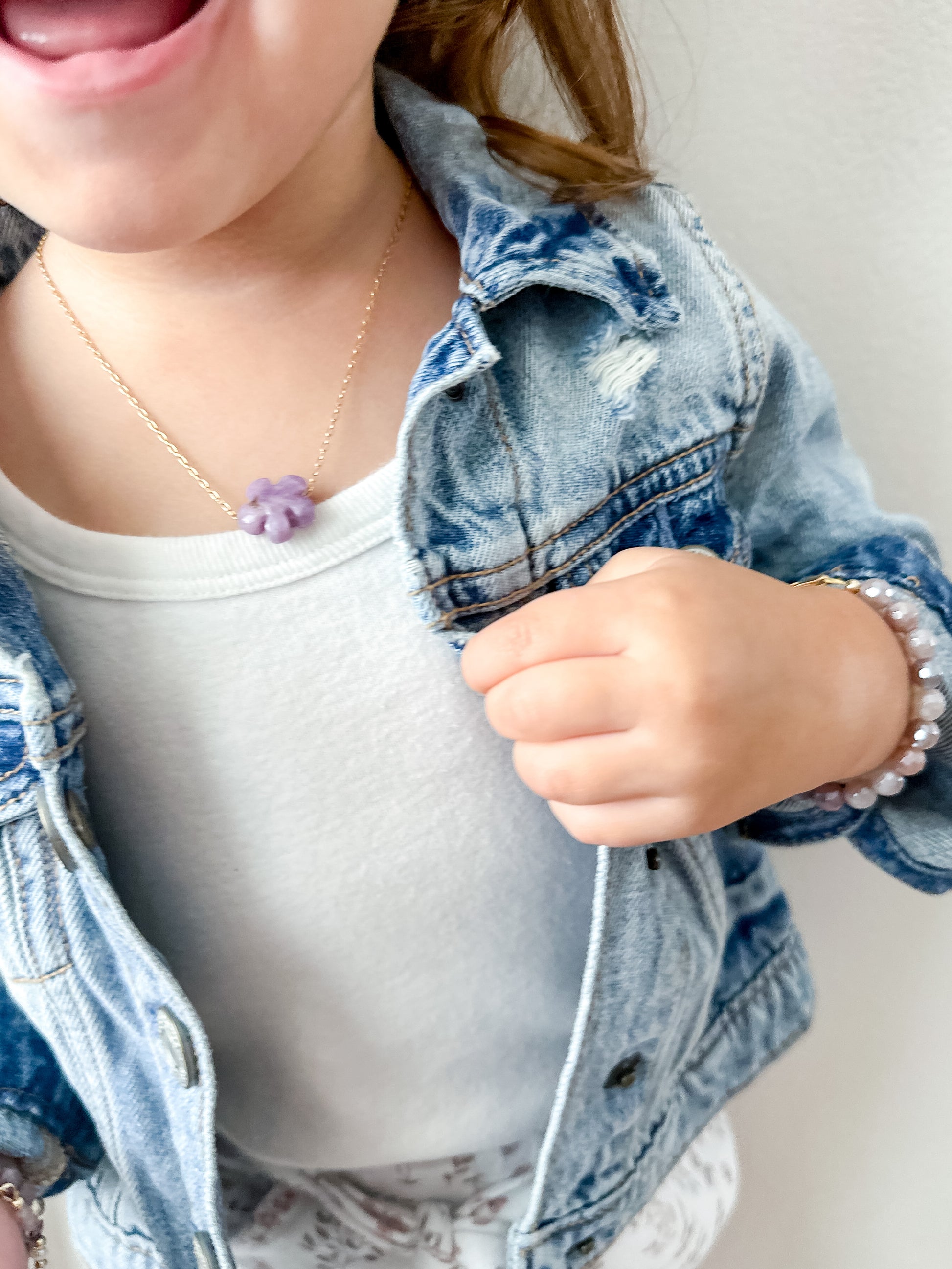 say "hello" to the lola flower necklace! crafted with a 15mm flower gemstone bead & goldfilled chain, it's the perfect accessory to liven up any outfit. put it on & let your look bloom! šø