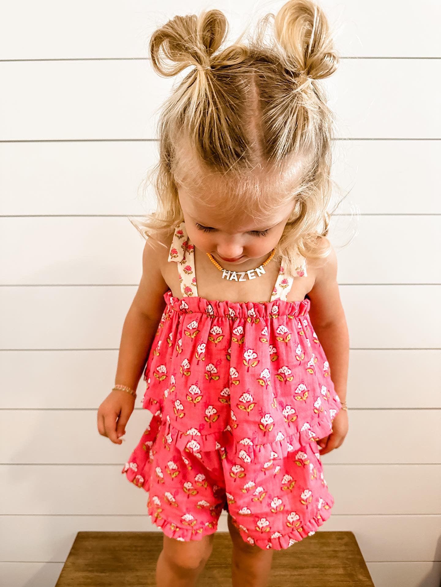 make a statement with a personalized mini bead name necklace! whether you go for a single letter or your whole name, each mother of pearl bead will shimmer, delight, and charm! make it yours with this one-of-a-kind accessory!