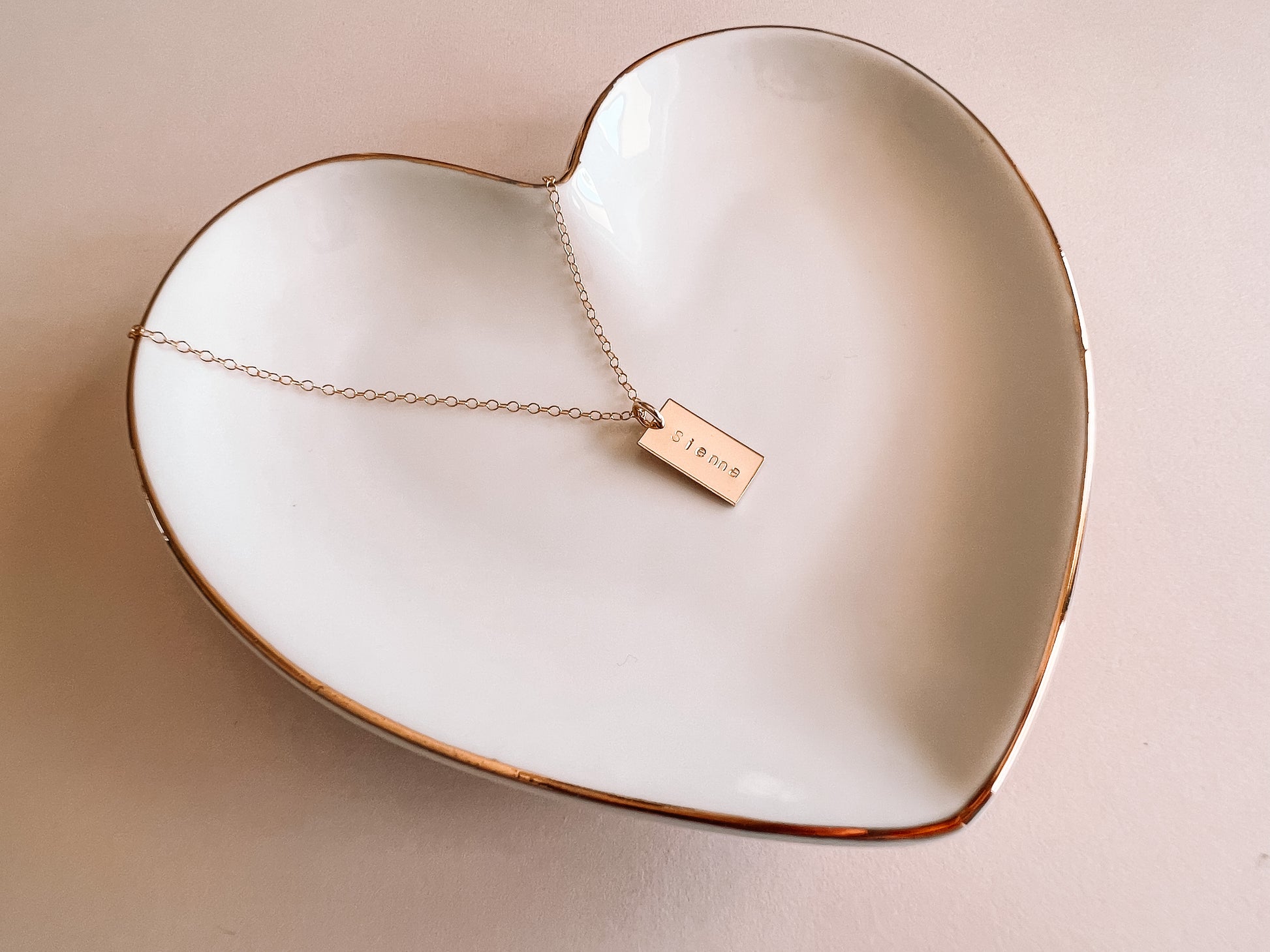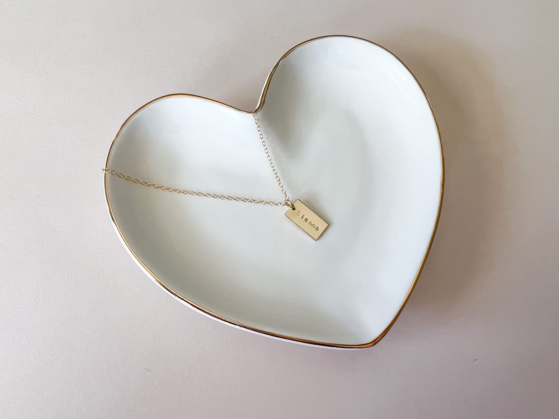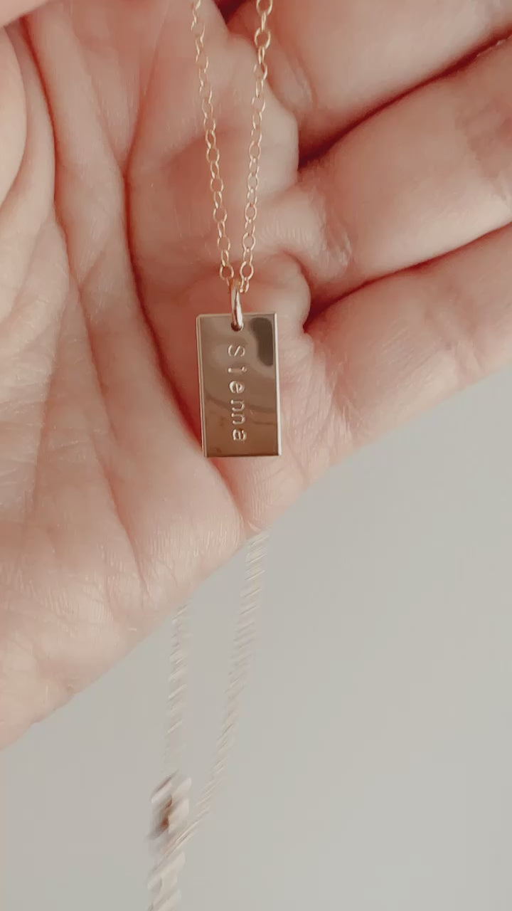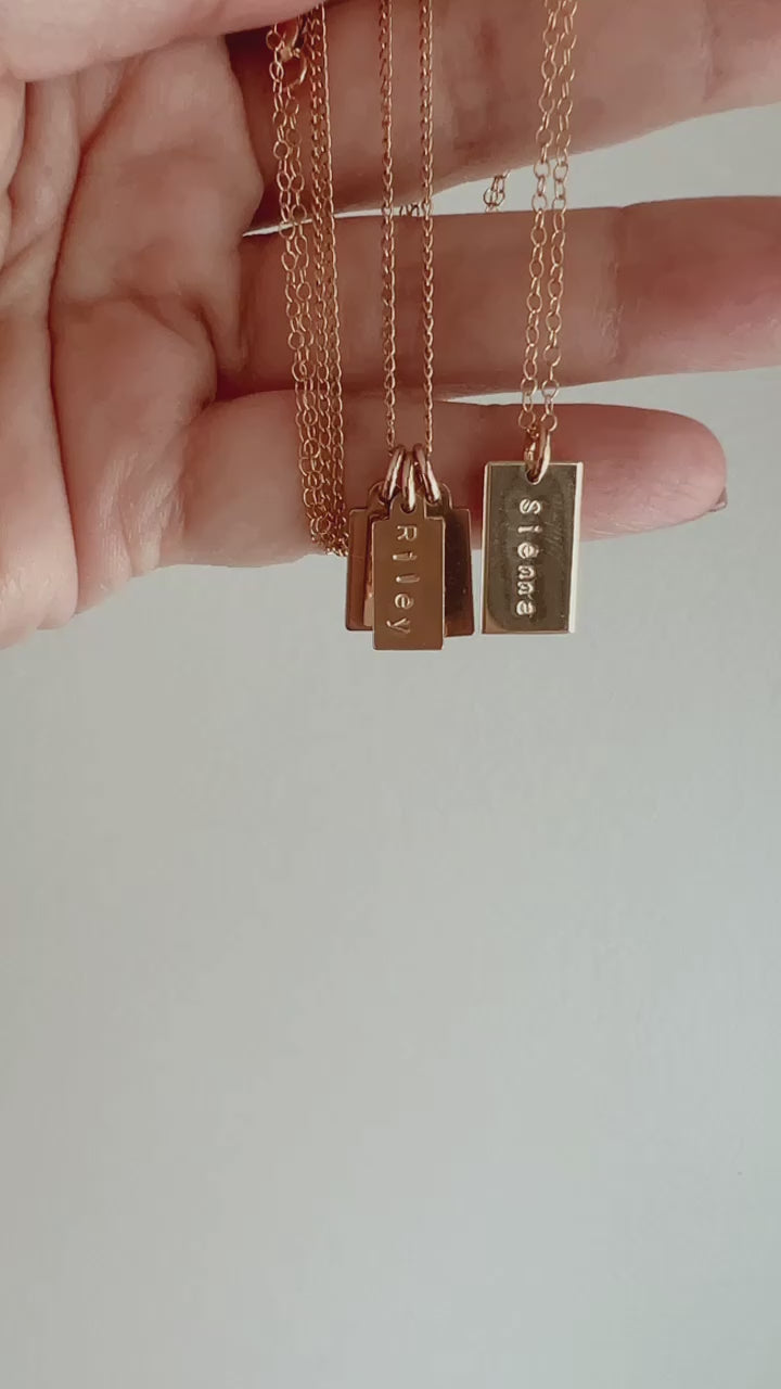 handstamped gold filled tags personalized with name (up to 8 characters) or initials on a gold filled chain