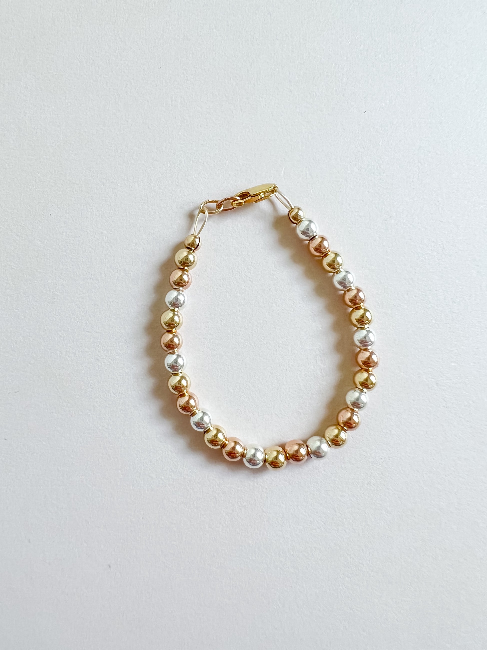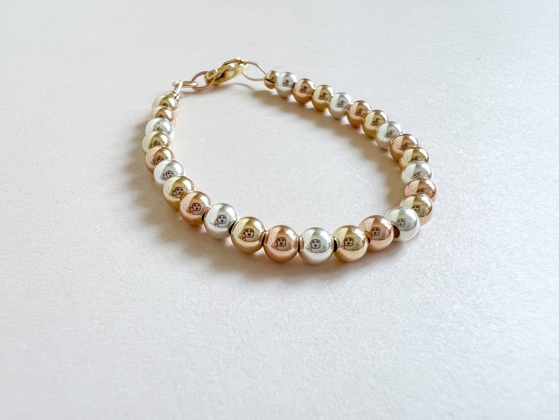 a blend of all three metal colors, gold filled, rose gold filled and sterling silver
